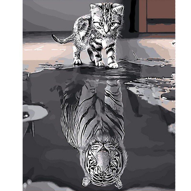 2.Finished size - Finished size is 16x20 inch / 40x50 cm. Without framed, Flower Cat Fisherman Landscape pattern.