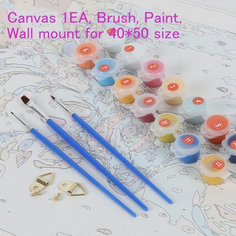 Package List:1pc Frameless Oil Painting(Include linen canvas +3pcs Paint brush + acrylic paint set + rendering + metal hook)
